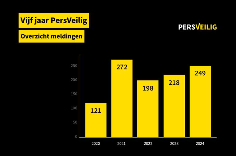 In 2024 a total of 249 incidents were reported to PersVeilig, against 218 in 2023 and 198 in 2022. The 249 incidents mainly concerns threats (99 times), discrimination or intimidation (72 times) and physical violence (56 times).